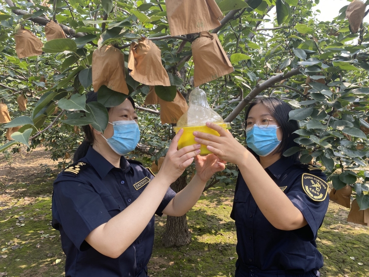 圖為石家莊海關(guān)關(guān)員對出口果園進行注冊審核。 通訊員高鳳超攝